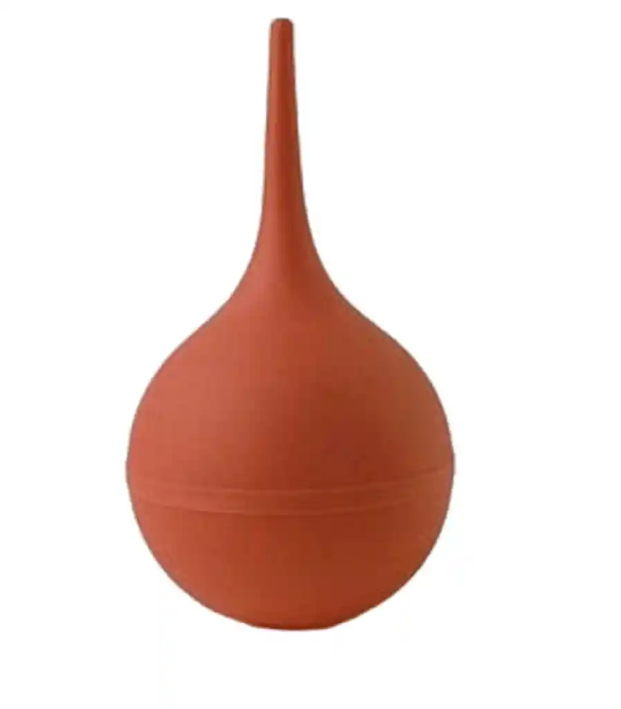 La pera de goma se usa como jeringa de oído con el fin de realizar lavados del canal auditivo externo y así mantenerlo permeable. Previo a un lavado de oído, la persona debe hacer tratamiento de 2 a 3 días con agua oxigenada diluida para soltar el cerumen, después de esto el paciente procederá con los lavados y aspiraciones repetidas hasta dejar el canal limpio.
