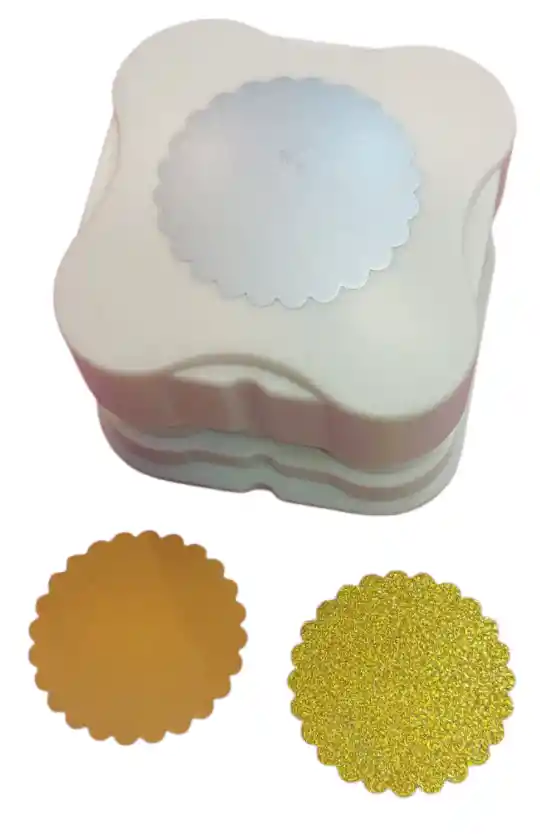 Perforadora tipo anywhere con diseño de círculo ondulado, tamaño 1,5" (38 mm aprox). Ideal para trabajos manuales y decoración. Medida de 5,8 x 3,8 cm aproximadamente. Gramaje papel: Mínimo: 80 g. Máximo: 200 g. Producto no apto para menores de 3 años.