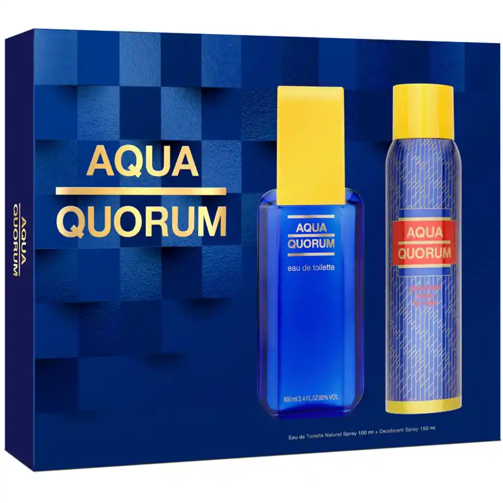 Perfume Quorum Hombre Aqua Edt 100 Ml + Desodorante 150 Ml
