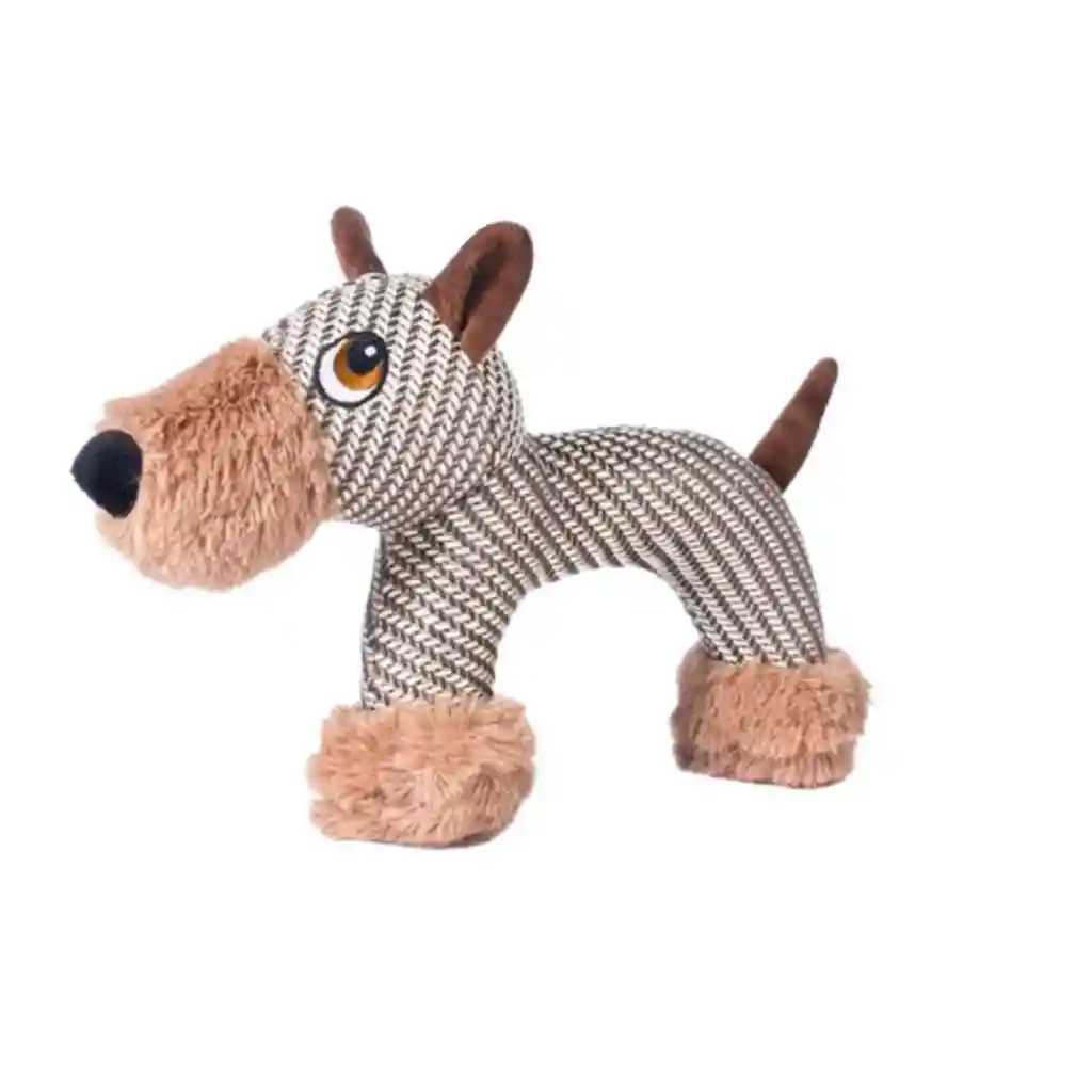 Es un juguete de peluche para perros con un diseño de perro terrier. Diseñado para satisfacer el instinto natural de masticar de los perros. Fabricado con tela de felpa suave y relleno de material blando, ideal para morder y abrazar. Ayuda a promover la salud dental al reducir la acumulación de placa y sarro. Adecuado para que los perros lo sujeten, muerdan y también puede servir como juguete tranquilizador. Dimensiones: 30 x 20 x 10 cm