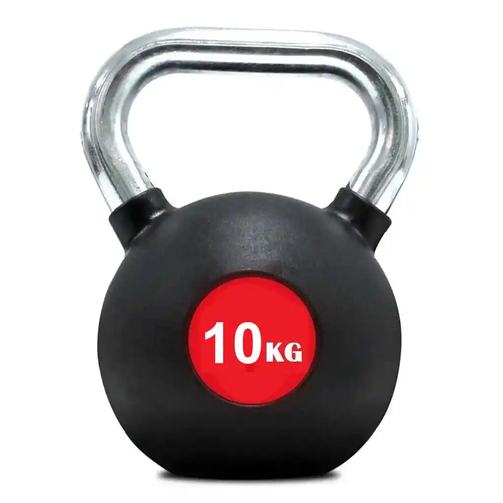 Pesa rusa base negra con asa metálica. Son ideales para entrenamientos en casas, funcionales, crossfit y tonificar los brazos. Te permite realizar ejercicios variables, a diferencia de las pesas tradicionales. Peso correspondiente a 10 kg, el asa es de metal por ende tiene un agarre muy seguro. Un proceso de fundición patentado hace posible que cada pesa rusa pueda alcanzar la más alta calidad sin una superficie libre de huecos y el acabado más limpio posible. Esto también nos permite producir un mango suave y cómodo.