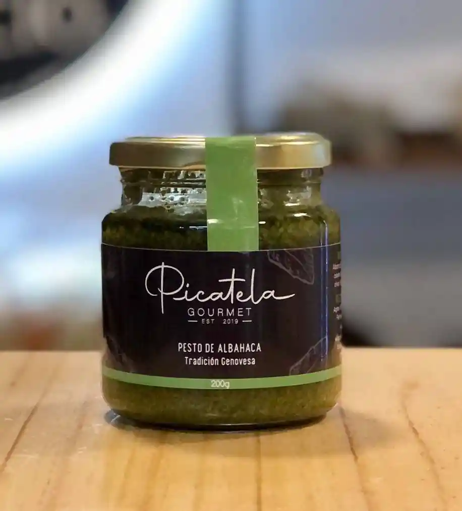 Pesto de albahaca con tradición genovesa, originaria de Liguria. Con albahaca fresca, un mix de aceites, maní, ajo y sal rosada. Muy versátil para comer con pastas, pizzas, ensaladas y por supuesto como picoteo.