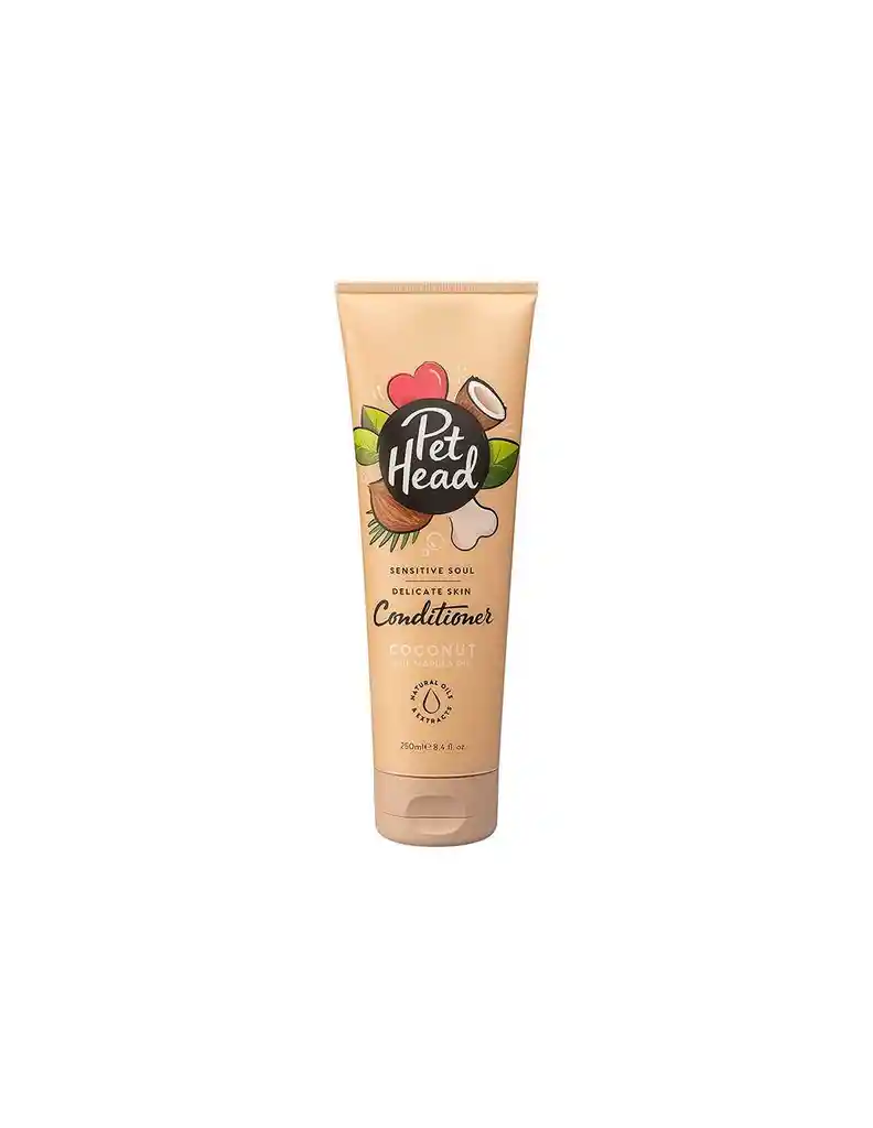 El acondicionador de coco para perros Sensitive Soul es ideal para acondicionar con cariño el pelaje de nuestros amigos perrunos. Tanto la avena como el extracto de caléndula son antiinflamatorios y calmantes con sus propiedades, mientras que el aceite de marula da esa humedad adicional y un efecto nutritivo. Beneficios: - Calma suavemente los picores de la piel delicada y deja un aroma tropical afrutado. - El acondicionador de coco contiene avena, aceite de marula y extracto de caléndula para proporcionar una hidratación extra y calmar a su mascota. - El acondicionador con pH equilibrado contiene aloe vera y proteínas vegetales, además de otros ingredientes naturales y saludables. - Rocíe el pelo de su mejor amigo y séquelo con una toalla. - Vegano y sin crueldad, sin parabenos, tensioactivos, colorantes, gluten ni frutos secos. Modo de uso: Lava a tu perro con el champú Sensitive Soul y enjuaga bien. A continuación, aplica el acondicionador Sensitive Soul y masajea bien. Una vez que enjuagues muy bien, cepillo, seca con secadora y tu perro estará listo para girar algunas colas.