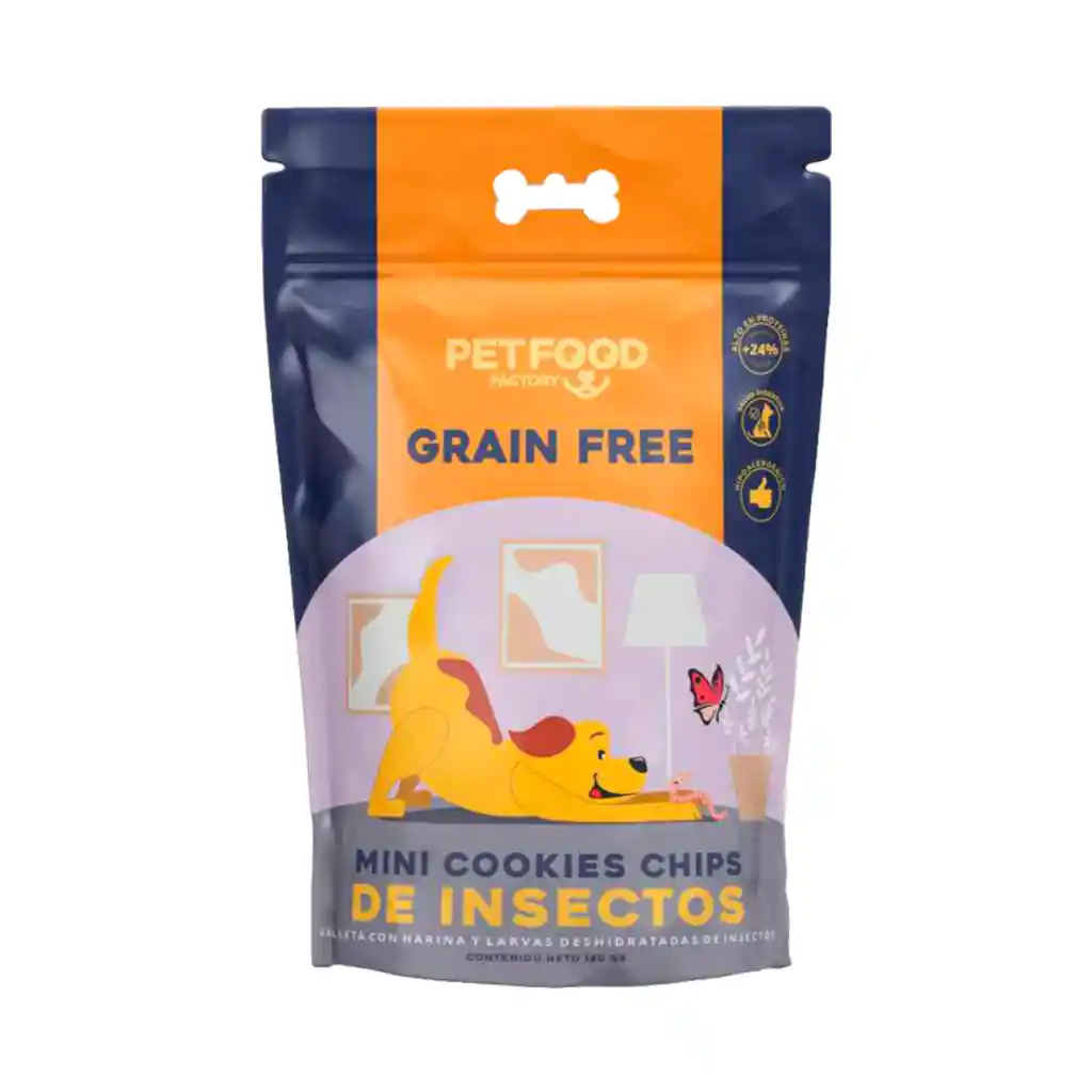 Galletas gf mini cookies chips insectos 180gr, de Pet Food Factory son una excelente opción para quienes buscan un snack saludable y nutritivo para su perro. Elaboradas con harina de insectos, una fuente ecológica de proteínas, estas galletas ofrecen una alternativa ideal para perros con sensibilidades alimentarias o alergias a los granos. Al ser libres de gluten y granos, son perfectas para canes con intolerancias alimentarias. Además, contienen ingredientes de alta calidad como harina de garbanzos, que aporta fibra y proteínas vegetales, y grasa animal de cerdo, que mejora la palatabilidad y proporciona energía adicional.