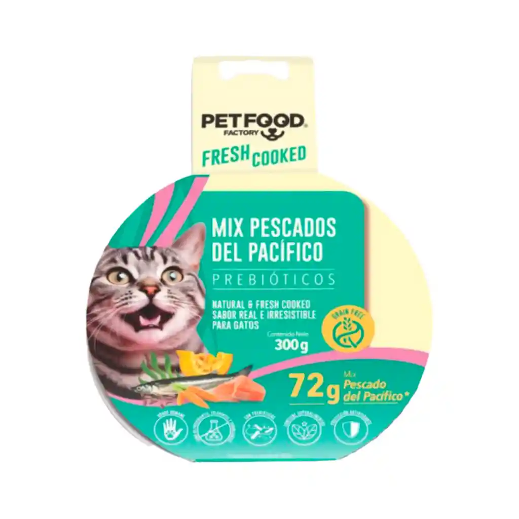 Ofrece a tu gato un sabroso y nutritivo complemento alimenticio con el Pate marino pescados del pacifico 300gr. Este producto está elaborado con ingredientes de calidad humana, libre de granos (Grain free) y enriquecido con prebióticos que promueven una digestión saludable. Es perfecto para gatos con necesidades dietéticas especiales.