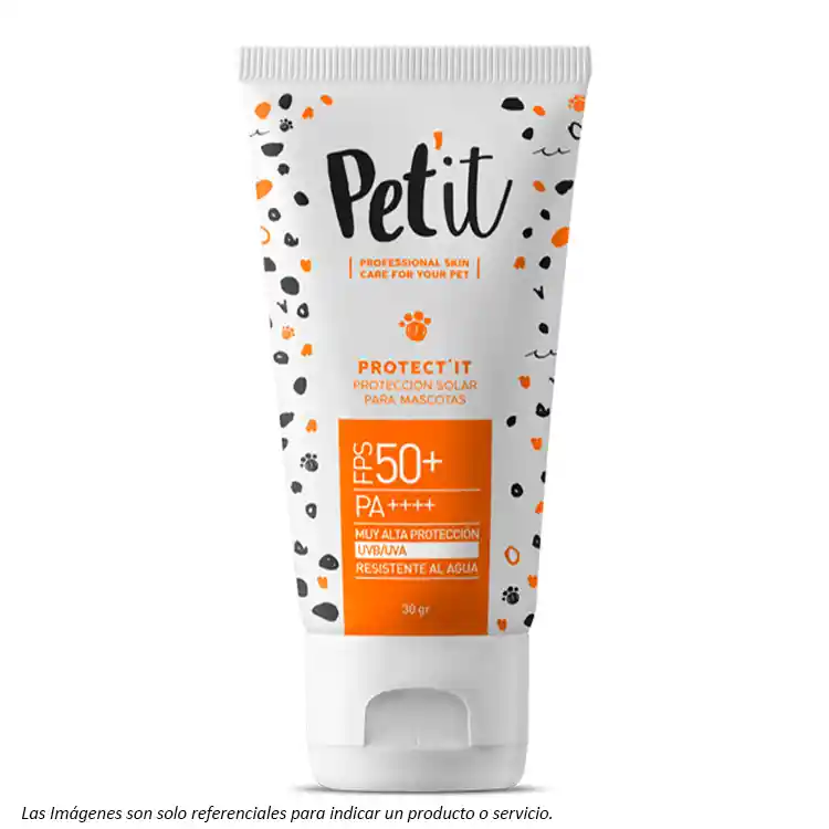 Pet'it Protect'it es una Protector Solar para Mascotas que ayuda a proteger la piel gracias a su FPS 50+ y PA ++++. Este Protector Solar para Perros y Gatos tiene una composición fluida que facilita la penetración inmediata y profunda en la piel, ha sido formulado con compuestos hipoalergénico y ofrece una muy alta protección frente a la radiación solar tipo UVB y UVA. Todos los productos de Petit son libres de parabenos, un tipo de preservante considerado alergénico y que puede alterar la flora bacteriana normal de la piel. Son libres de perfumes para que no dificulten la aplicación en mascotas. Fórmula hipoalergénica y pH 7 neutro para ser usados por mascotas con pieles sensible y con el pH correcto que contribuye a la salud de su piel. Características: *Protector Solar para Mascotas de todas las edades y razas. *Cuida la piel de los rayos UV *Fórmula hipoalergénica *Resistente al agua *Con pH neutro *Libre de zinc y benzofenonas Tamaño 30 gramos
