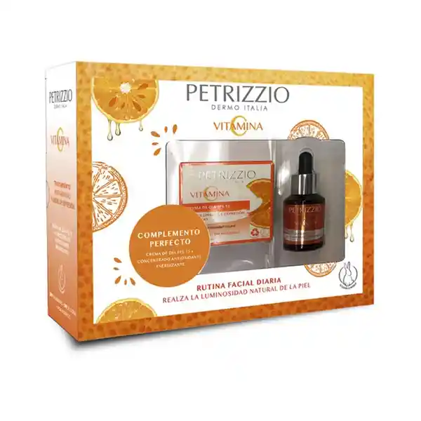 Set Petrizzio Contiene 2 Unidades: Crema Suave Liviana y Fácil de Esparcir 1 Und + Suero de Vitamina C 1 Und. Que es un Potente Antioxidante y Potenciador en la Formación de Colágeno.