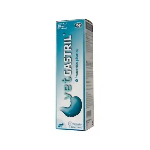 Vetgastril, 20 ml. Es un producto veterinario compuesto de un complejo de sacarosa sulfato, con gel de hidróxido de aluminio. Es un suplemento alimenticio, cuya función es la de formar una barrera protectora de la mucosa gástrica. Cuando la mucosa está lesionada, los jugos gástricos la agreden, impidiendo el proceso de reparación.