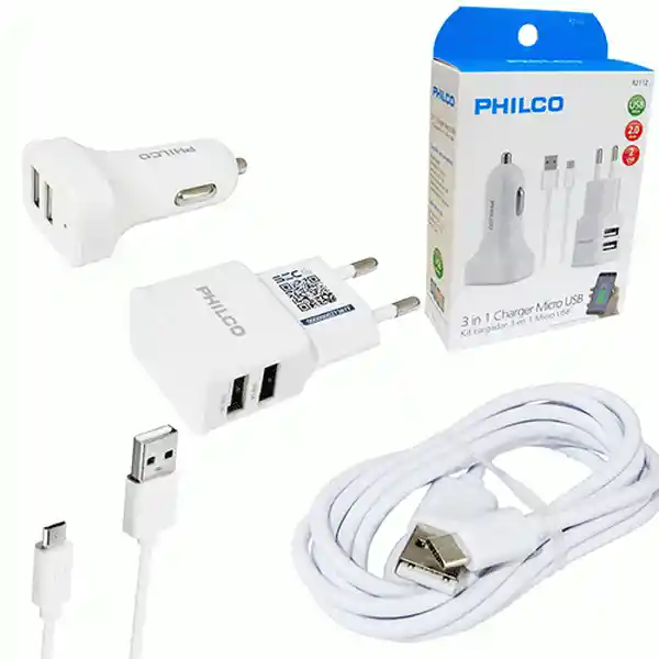 Philco Kit Contiene 2 Unidades. Cargador Muro/auto 1 Und + Cable Micro Usb 1 Und.