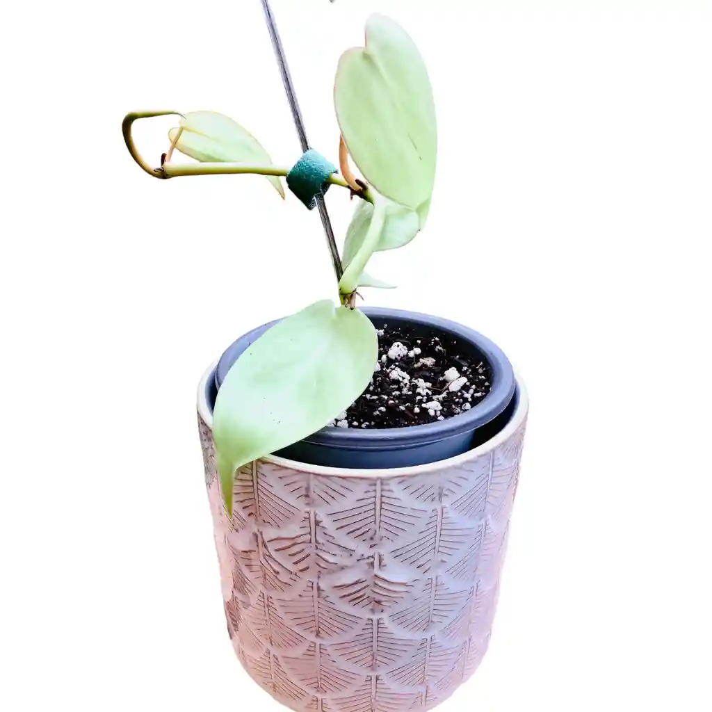 Philodendron Neon. \n \nAñade un toque de luz y color a tu hogar con este vibrante Philodendron 'Neon' (también conocido como 'Lemon' o 'Limón'). Sus hojas en forma de corazón lucen un llamativo color verde lima/neón que ilumina cualquier rincón. Es una planta de interior muy apreciada por su facilidad de cuidado y su crecimiento colgante o trepador, ideal para estanterías altas o cestas colgantes. \n \nGuía Rápida de Cuidados: \n \nLuz: Es importante ubicarla cerca de una ventana con mucha luz para mantener su increíble color; nunca exponer al sol directo, ya que quemaría sus hojas. \n \nRiego: Regar cuando la primera capa de sustrato esté seca. \n \nHumedad: Lo ideal para todas las plantas tropicales tener un 60% de humedad como promedio. \n \nTip Plantlovers: ¡Si le das un tutor, te entregará hojas enormes!. \n \n \nPlanta tóxica, no es Petfriendly 🐶🐱