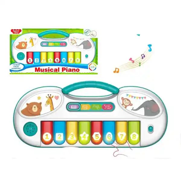 Este colorido piano de 32 cm introduce a los niños en el mundo de la música. Cuenta con 4 funciones: piano, tambor, saxofón e imitación de animales todas acompañadas de melodías, música y luces haciendo cada una de ellas una aventura. Estimulan la audición, la memoria y la coordinación. ¡Un juguete interactivo ideal para aprender y jugar al mismo tiempo! Medidas: 34x19cm caja Carga: 3 AAA