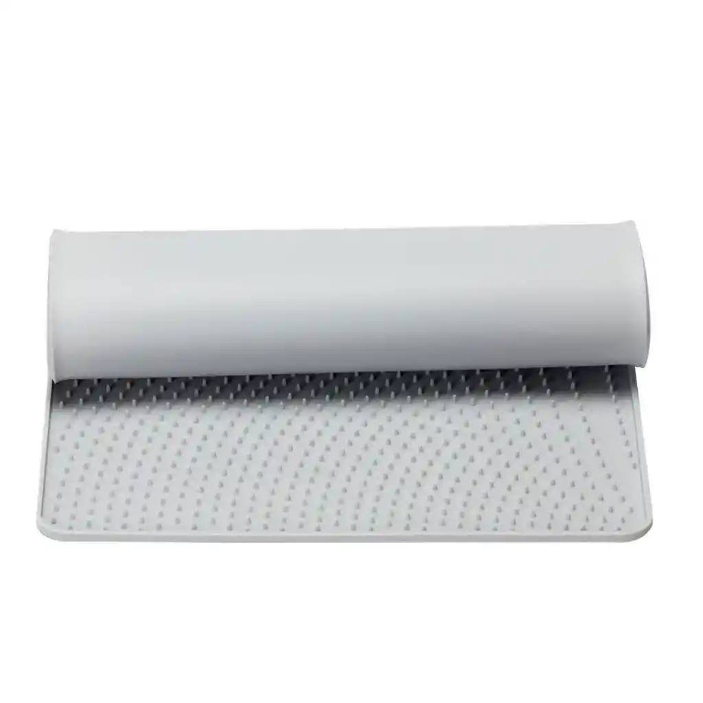 Ahora es más sencillo que nunca mantener limpias las patas de su gato y sus suelos libres de basura suelta con esta innovadora alfombra de silicona para gatos. Con una superficie única de protuberancias con espacios estratégicamente colocados entre las líneas de las protuberancias para atrapar la arena, esta alfombra de silicona de alta calidad está inteligentemente construida para brindarle una manera efectiva de mantener las patas de su gato libres de arena después de que salga de su caja de arena. El tapete de silicona permanece en su lugar y es fácil de enjuagar y limpiar, lo que lo convierte en una excelente alternativa a los tapetes de plástico o de tela. También se puede enrollar y doblar para un almacenamiento sin esfuerzo. Tapete simple y suave, suave y flexible para una fácil utilización y almacenamiento. Mantenga limpia su casa y el orinal de su gato Hecho de silicona, suave y duradero. Permanece en su lugar y no se desliza ni se desliza para evitar lesiones. Bloquea eficazmente la arena, fácil de almacenar y limpiar.