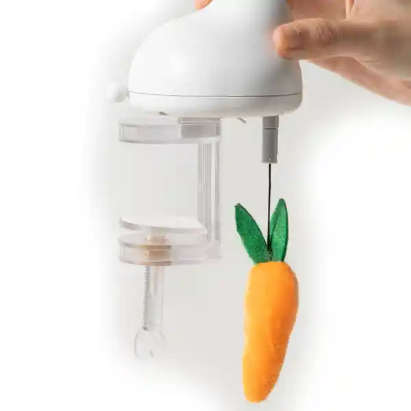 Pidan Juguete Para Gato Automático - Conejo y ZanahoriaDescripciónUn Pequeño Juego de Pesca Para Jugar Con tu Gato. Un Juguete Automático Para Burlar Gatos. El Cebo Para Gatos Colgante Sube y Baja, Llamando la Atención de su Gato. Destinado a Hacer un Montón de Alegría y Duplicar la Ternura.Colóquelo en Cualquier Lugar, en Cualquier Momento. Se Adapta a Cualquier Superficie Plana Con un Grosor de 0.8 a 4.6 cm.¡Simplemente Con Una Pulsación, su Gato Puede Disfrutar Plenamente Del Juguete de Caza Durante 8 Minutos! ¡Un Fantástico y Lindo Adelanto de Gato Parecido a la “Pesca” Que le Permite a su Gato Tener Una Hora de Caza Feliz en Cualquier Momento y Lugar!Características:Estructura de Bloqueo en Espiral Ajustable Con Una Cuerda Colgante de Nylon de 65 cmSe Adapta a Cualquier Superficie Plana Con un Grosor de 0.8 a 4.6 cm.La Longitud de la Cuerda es de 65 cm, Excluyendo la Parte Del Cebo. Deje Suficiente Espacio Para Que el Cebo se Mueva Justo Debajo Del Juguete.Manual de Uso:1. Deslice Para Separar el Cuerpo y la Base Transparente.2. Desatornille la Carcasa de la Batería.3. Coloque Dos Baterías AAA y Luego Atornille la Tapa.4. Fije y Estabilice la Base en el Lugar Deseado.5. Deslice el Cuerpo en la Base.6. Presione el Botón Redondo de Encendido / Apagado Para Comenzar.Tamaño: 94 x 78 x 168 mm / Peso Neto: 122.5 g / Materiales: Abs (Cuerpo), pc (Base), Felpa Corta Súper Suave de Cristal (Colgante)