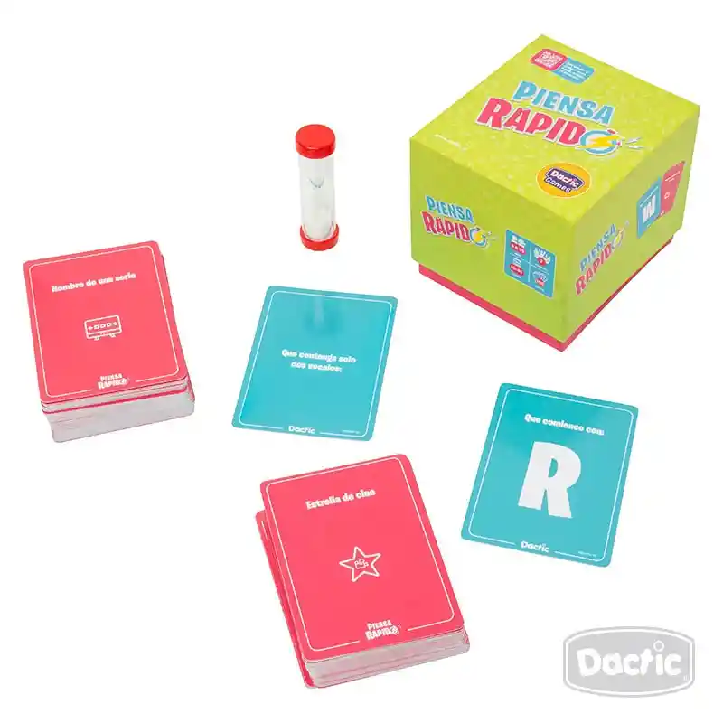 Responder de forma rápida y correcta la mayor cantidad de preguntas. . Contenido: 100 cartas de 6 x 8 cm. aprox., 1 reloj + instructivo. ¿No sabes jugar? ¡No te preocupes! Escanea el QR y aprende. N° de jugadores: Desde 2. Tiempo de juego: De 15 a 45 minutos . Recomendado desde los 8 años.