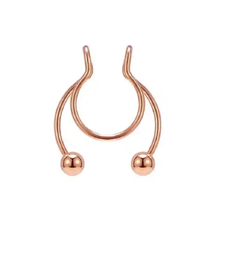 Piercing Nariz-Labios. Sin Hoyos. Septum Sin Perforación Material: Acero inoxidable Peso aprox: 0.6 g Color Oro rosa (Se envía en bella presentacion para regalo) Ofrecemos joyas únicas que cuentan historias especiales. Contamos con una amplia variedad de joyas de metales preciosos, gemas y arte adaptados a los gustos de nuestros clientes. Además, disponemos de auténticas piedras preciosas de la mejor calidad. Descubre nuestros productos en plata, oro, oro rosa y acero quirúrgico 316L, perfectos para cualquier ocasión. Encuentra el regalo u obsequio perfecto para cumpleaños, aniversarios, San Valentín, día de las madres, día del padre, graduaciones, viajeros, bodas y más. ¡Regalos originales y obsequios para todo tipo de fanáticos! Una joya o accesorio es el obsequio perfecto pues siempre añade un toque de elegancia a tu atuendo y look.