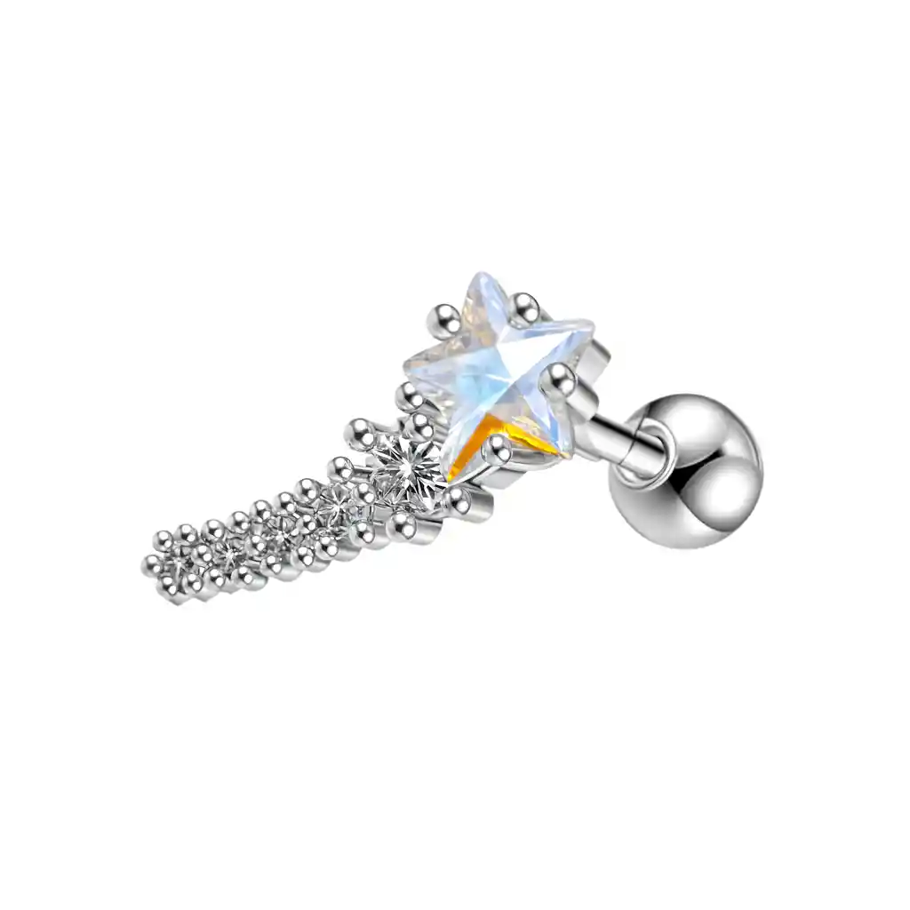 ¿Estás buscando pendientes elegantes y seguros para tu perforación de hélix? ¡No busques más! Estos pendientes de acero inoxidable son la solución perfecta para ti. Con un mecanismo de seguridad que mantiene los pendientes firmemente en su lugar y fabricados con materiales de alta calidad para evitar alergias e irritaciones, estos pendientes son una elección fácil. Sabemos que la seguridad es importante para ti, por lo que estos pendientes vienen equipados con un mecanismo de seguridad de tornillo que los mantiene firmemente en su lugar, evitando la pérdida accidental del pendiente. ¿Te preocupa la irritación o las alergias? ¡No hay necesidad! Estos pendientes están hechos de acero inoxidable de alta calidad, un material que no causa irritación ni reacciones alérgicas en la piel. Además, estos pendientes de estrellas de acero son fáciles de colocar y cómodos de usar, lo que los convierte en la elección perfecta para cualquier ocasión. Hermosos y curiosos pendientes fabricados en acero inoxidable antialergico decorados con hermosa zirconia, con forma de estrella y con detalles en color tal cual fuera una aurora boreal. Son usados de igual forma como piercing conch helix, este se puede usar en el lóbulo de la oreja como se muestra en las imagenes de la publicación. Es importante que sepas que todos nuestros productos se envían en bella presentación para regalo. Metal: Acero inoxidable. Piedra: Zirconia Cúbica Cantidad: Precio por unidad (1 solo pendiente) Peso aprox 2 g (Se envía con bella caja para regalo)