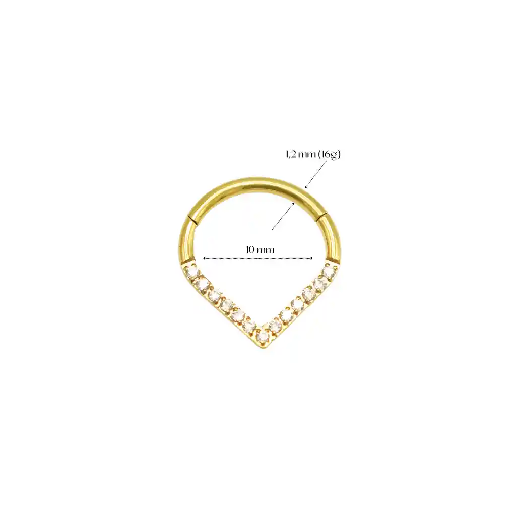 ¡El piercing ideal para tu perforación inicial! O si ya la realizaste y no cicatriza bien tu pieza. Para las perforaciones de septum, hélix, daith, tragus, antitragus, lóbulo. Fabricado en titanium, ASTM F136, que no es más que la especificación de la aleación que se utiliza para los implantes quirúrgicos. Pesa la mitad que el acero y es el doble de resistente. ¿Por qué una pieza de titanio para tu primera perforación? El titanio es el metal más compatible con el organismo humano (considerado como el metal más biocompatible que no es dañino ni tóxico para los tejidos del organismo), hasta el momento no se han reportado reacciones alérgicas del sistema de defensa del cuerpo. Esto significa que los tejidos de tu organismo tolerarán su presencia sin provocarte reacciones alérgicas lo que conjunto a una buena higiene y los cuidados adecuados, te da la seguridad de que tu pieza podrá sanarse de la forma adecuada. Además de esto, cicatriza 3 veces más rápido que otros materiales gracias a su efecto espejo el cual es un tipo de acabado que se le da a la superficie de la joya. Otras características que hacen que el titanio sea de las mejores opciones es que no se oxida, debido a que una de sus cualidades es su resistencia a la corrosión de los fluidos corporales (sangre, saliva, entre otros) debido a la formación de una capa pasiva de oxígeno de titanio en la superficie de la aleación, incrementando su resistencia a la corrosión de forma natural en presencia de oxígeno. Tampoco contiene níquel y es más ligero que otros materiales. Por eso es el material más indicado para la elaboración de prótesis, ¡Menos duda debe generar que sea el indicado para tu primera pieza! Es importante que sepas que en el empaque se envía 1 piercing. Cabe destacar que todos nuestros productos son enviados en cajitas o bolsitas de regalo, listos para obsequiar. Características: Material: Titanium ASTM FF136 G23 con acabado Chapado en Oro. Piedras: Circonios cúbicos. Peso aproximado 2 g