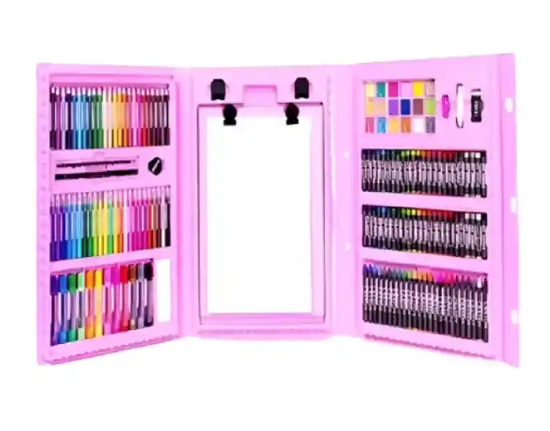 El juego de arte de caballete triple de doble cara está equipado con un caballete integrado de doble cara, por lo que es fácil para tu hijo colorear y crear en cualquier lugar que puedas abrir tu funda. Los padres con dos hijos ya no tienen que preocuparse por que sus hijos luchen por juguetes. Solo deja que pinten juntos. Este juego de dibujo y pintura está hecho de materiales ecológicos, no tóxicos e inodoros. Son seguros para que los niños lo usen. Viene con una hermosa caja de almacenamiento, puedes llevarla contigo, adecuado para uso en la escuela, viajes o en casa y oficina. El diseño del velcro en la parte inferior hace que sea fácil para los niños abrir y cerrar, y mantiene todos los materiales de una manera organizada.
