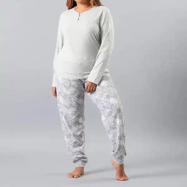 Contiene 2 Unidades. Camiseta 1 Und + Pantalón 1 Und. Abotonado Con Print Color Gris Melange Talla XL 57% Algodón 38% Poliéster y 5% Elastano.