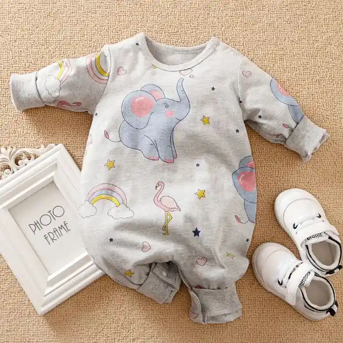 Hermoso pijama estampado de elefante color gris . Suave y ligero, ideal para dormir. Características Color: gris Tipo de estampado: elefante Escote: cuello redondo Longitud de la manga: manga larga Tejido: elasticado ligero Material: algodón Composición: 100% algodón Instrucciones de cuidado: lavadora o limpieza en seco profesional Forro: sin forro Transparente: no Detalle de Tamaño (talla (cm) Talla: 1-3 meses Hombro: 22 cm largo: 50 cm Largo de la manga. 22,8 cm Pecho: 51 cm Contorno de caderas. 57 cm ❤Todos nuestros pedidos van siempre en presentación regalo listos, con una tarjeta para dedicar =) ❤
