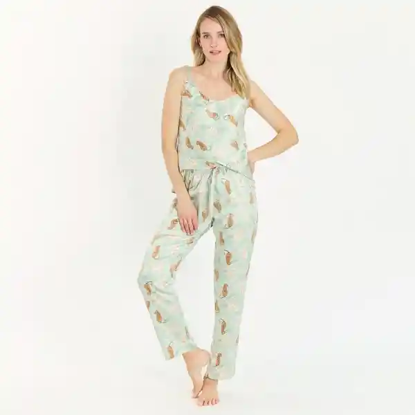 Pijama Cinta Pantalon Largo Verde Estampado Talla S Bbz Barbizon