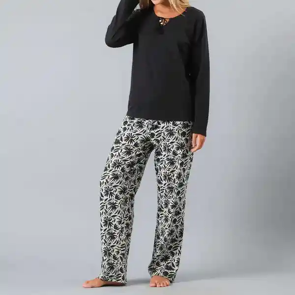 Contiene 2 Unidades. Camiseta 1 Und + Pantalón 1 Und. Escote Borla Color Negro Talla XXL 57% Algodón 38% Poliéster y 5% Elastano.