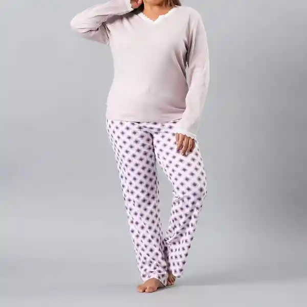 Contiene 2 Unidades. Camiseta 1 Und + Pantalón 1 Und. Escote V Rib Encaje Color Lila Talla XL 57% Algodón 38% Poliéster y 5% Elastano.