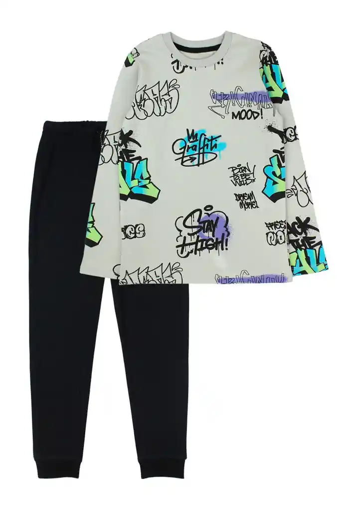 Pijama Kids Niño Algodón Graffiti 268 Gris 2 Años
