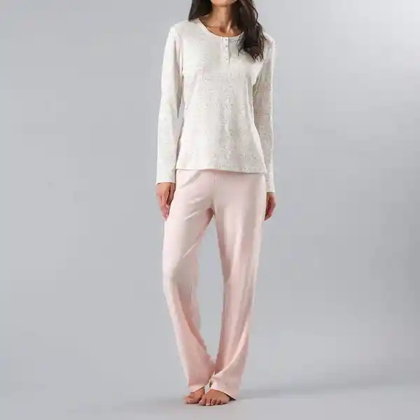 Contiene 2 Unidades. Polera 1 Und + Pantalón 1 Und. Polera Rib Con Pata Color Coral Talla S 57% Algodón 38% Poliéster y 5% Elastano.