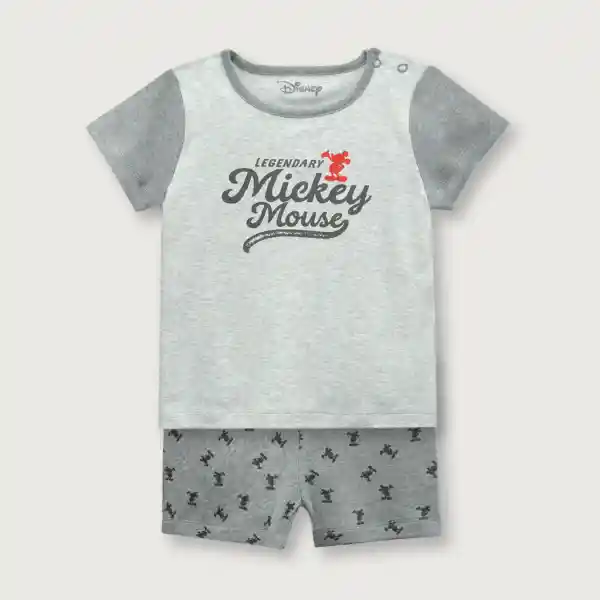Pijama Polera + Short Mickey Melange Gris Talla 9M Opaline