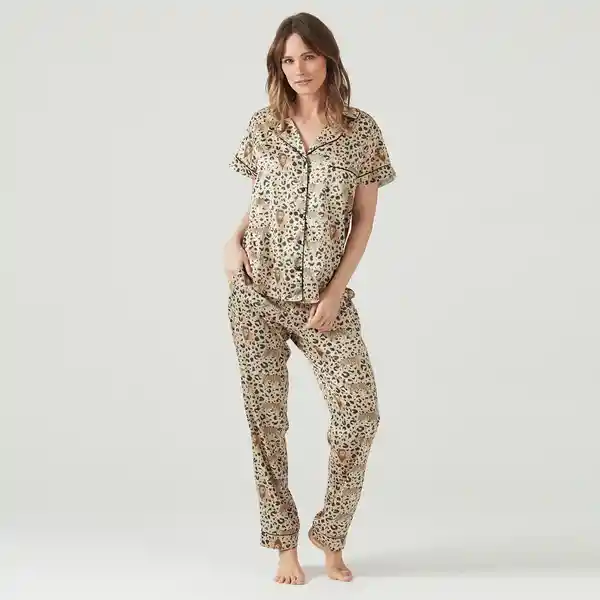 Tipo de Producto: Pijama 2 piezas. Marca: Bbz Barbizon. Color: Beige Estampado. Composición: 97% Poliéster, 3% Spandex.