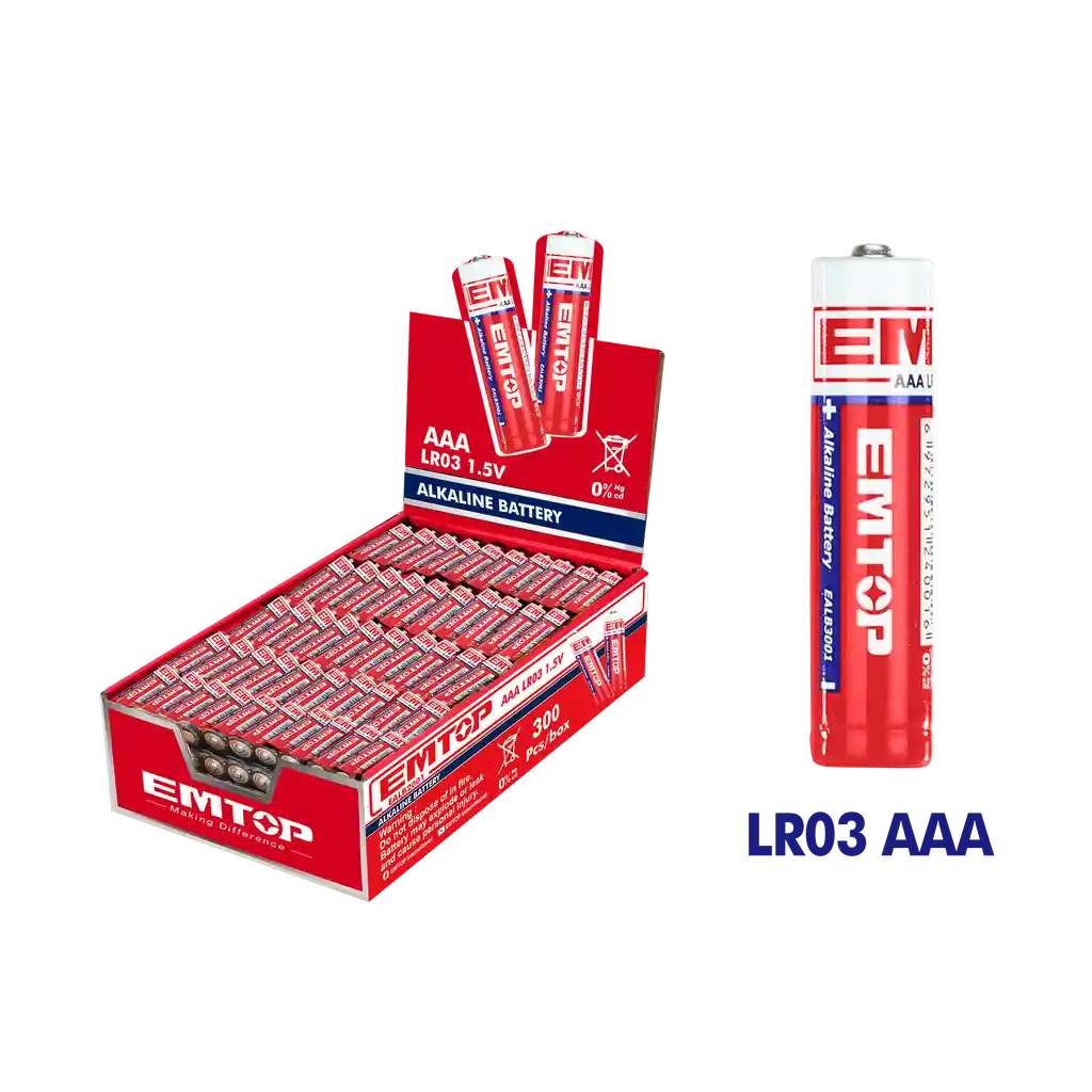 1.5V LR03 AAA alcalina Tensión nominal: 1.5V Tamaño: AAA (LR03) chaqueta de aluminio periodo de caducidad: 5 años Capacidad: 1300 mAh Embalado por la caja de color Costo por unidad $190