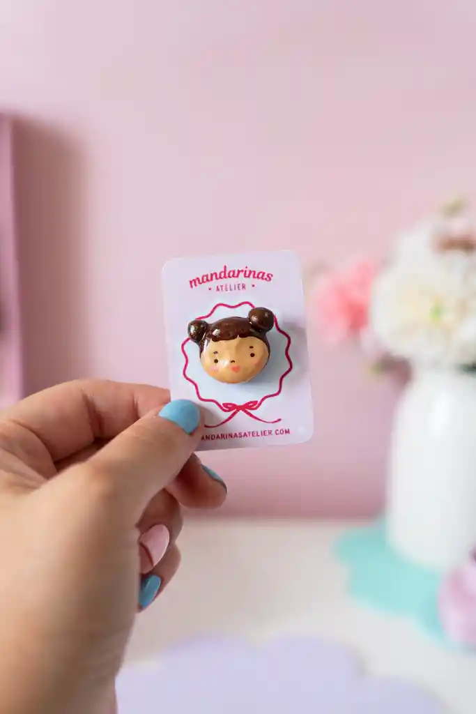 Pin Carita Cada prendedor es una carita única hecha a mano. Son perfectas para añadir un toque divertido y dulce a cualquier prenda. • Decora tus chaquetas, bolsos o mochilas, añade fantasía a tu estilo. • ¿Tienes un día largo por delante? Llévala contigo para recordarte que la magia va contigo. • Un detalle para compartir, una regalo para a esa personita especial siempre ilumina el día! Medida: 2-3cm aprox, porcelana fría con terminación en resina, resistente. Pin metálico con broche mariposa.