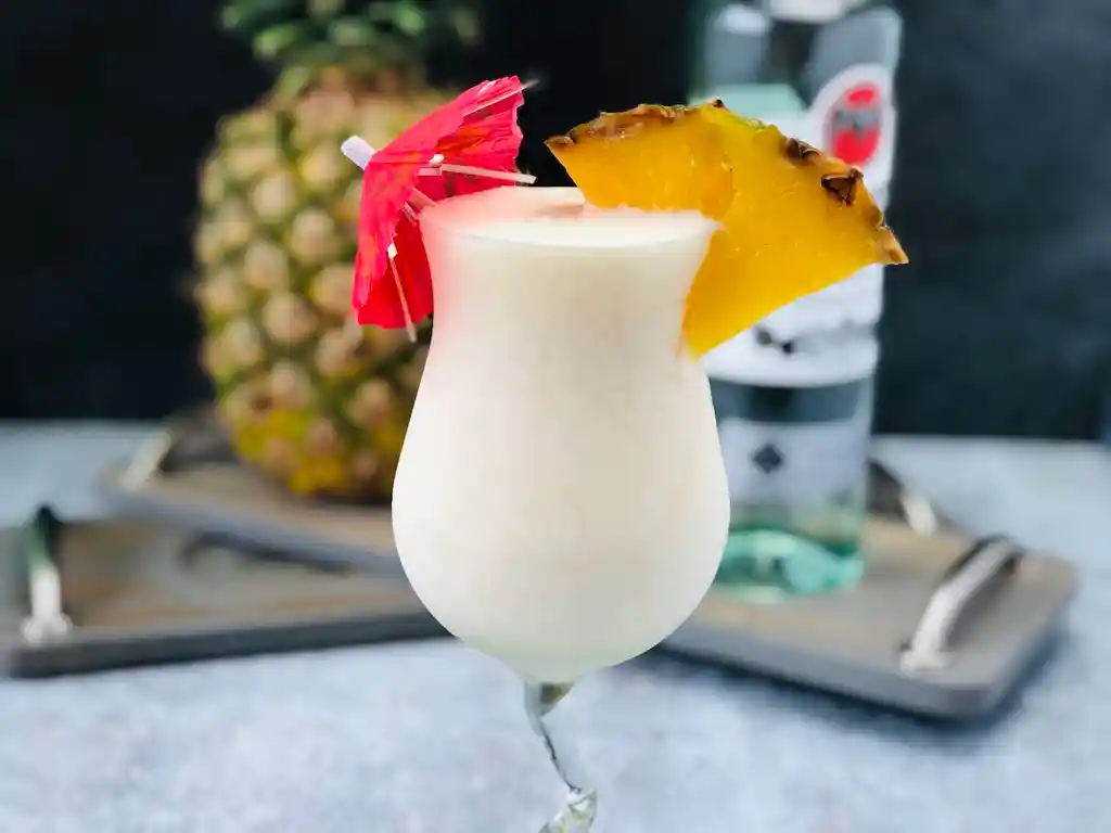 Ron Bacardí, bebida de coco, pulpa natural de piña, hielos