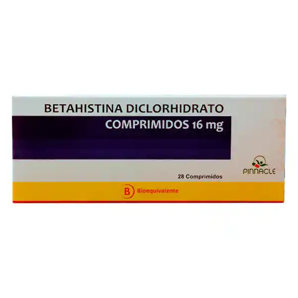 Betahistina Diclorhidrato (16 mg). Contiene 28 Comprimidos.