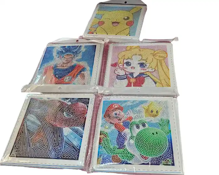 Pintura De Diamante Personajes Varios 18x18cm En porta retrato Hermosos Cuadros para practicar la pintura de Diamante incluye todos los materiales (Diamante, Lapiz, Bandeja para diamantes y goma para tomar y los Diamantes. EL Diseño viene para colocar en un porta retrato de madera mdf despues de terminar tu obra. Se envia diseño aleatorio o seleccionando por mensaje al momento de la compra.