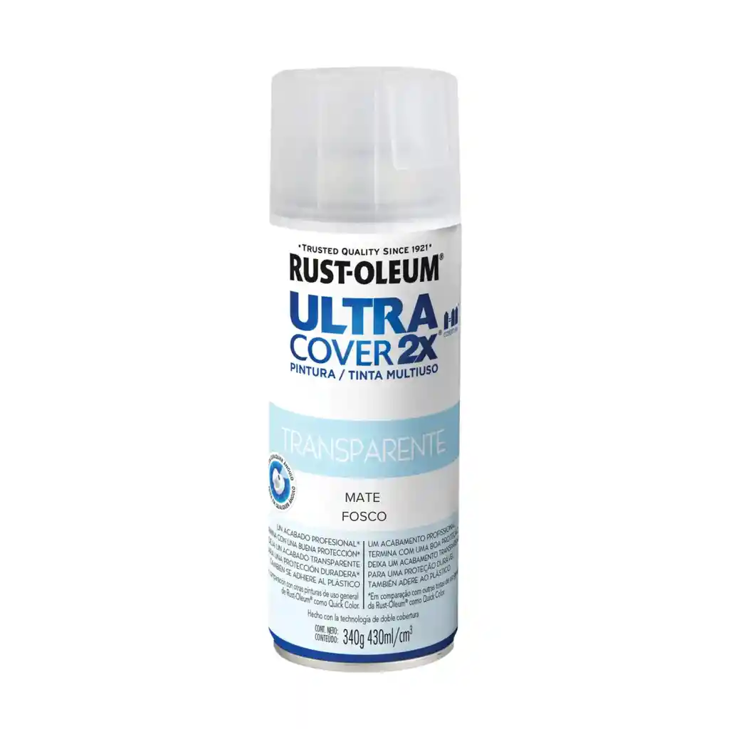 Pintura en aerosol ultra cubritiva para aplicar sobre madera, metal, plástico, mimbre, vidrio y más. Con los aerosoles Rust Oleum Ultra Cover® 2X puedes renovar, restaurar o reciclar el objeto que imagines BENEFICIOS: - Rinde más del doble - Cubre más del doble - Directo sobre plástico - Pinta en cualquier ángulo - Más colores y acabado - Válvula confortable - Secado rápido - Tapa de seguridad