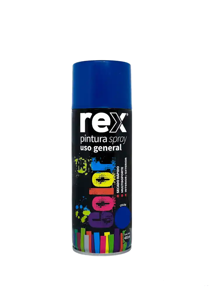 REX Spray Color USO GENERAL fue desarrollado con resinas acrílicos de secado rápido y óptima resistencia a la intemperie, excelentes acabados, poder de cobertura y efecto decorativo. Puede ser utilizada en interiores y exteriores para aplicaciones en hierro, acero, madera, cerámica, yeso, entre otros.