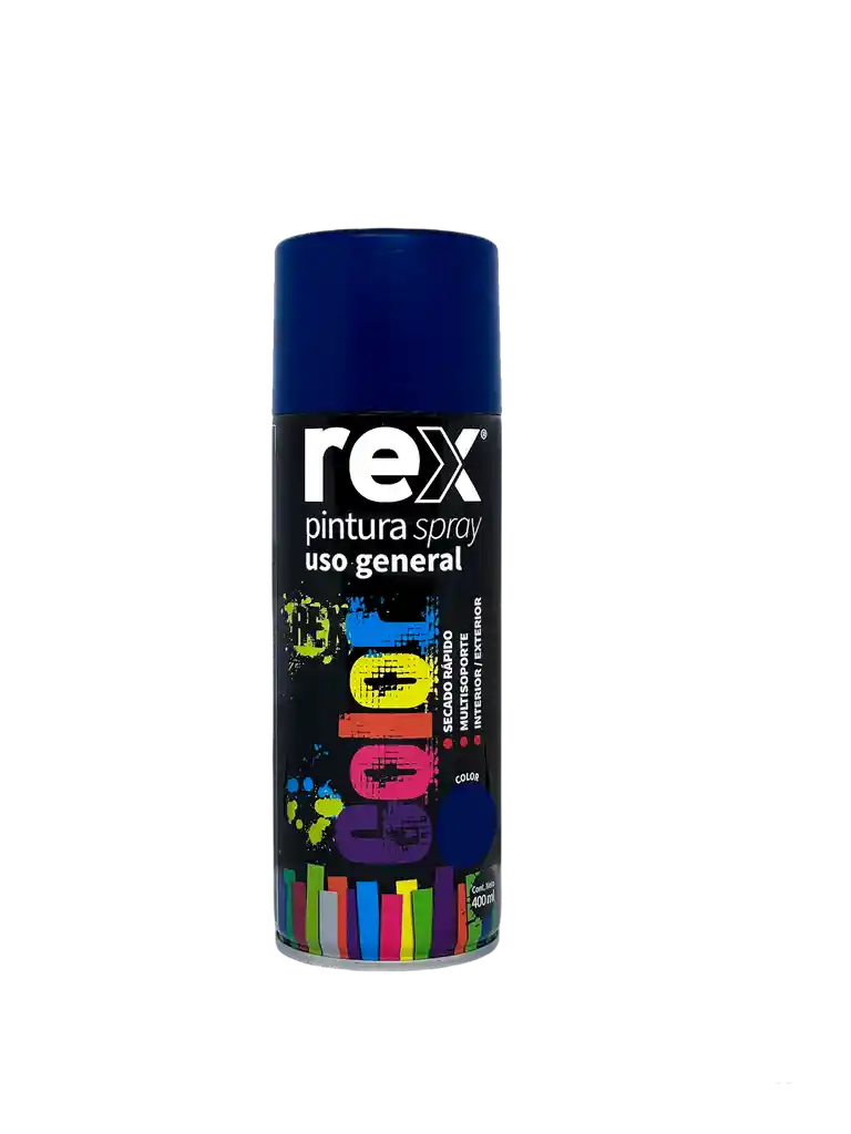 Pintura en spray REX de 400 ml ideal para trabajos de pintura y decoración en interiores y exteriores. Su fórmula acrílica de secado rápido ofrece excelente cobertura, acabado uniforme y alta resistencia a la intemperie. Perfecto para pintar metal, hierro, acero, madera, cerámica y yeso, logrando resultados duraderos y profesionales. Ideal para reparaciones, manualidades y proyectos de mejoramiento del hogar. ✔ Secado rápido ✔ Alta cobertura y acabado decorativo ✔ Resistente a la intemperie ✔ Apta para múltiples superficies