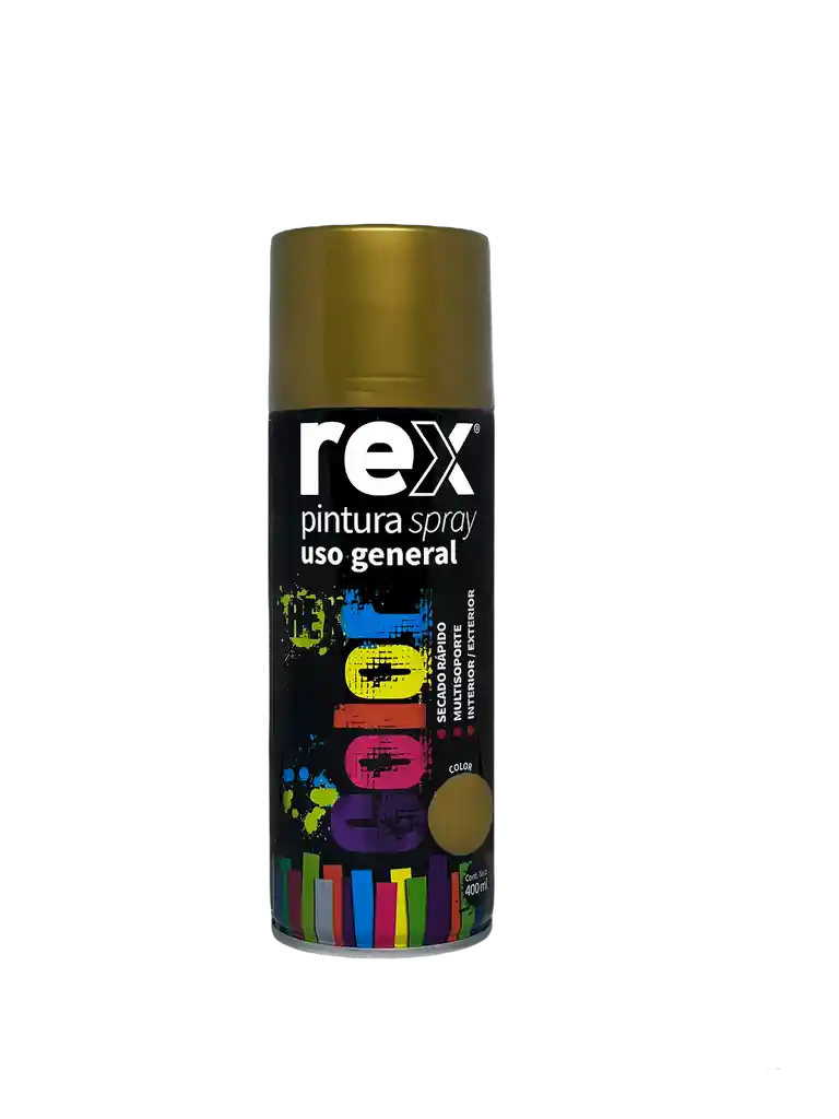 Pintura en spray REX de 400 ml ideal para trabajos de pintura y decoración en interiores y exteriores. Su fórmula acrílica de secado rápido ofrece excelente cobertura, acabado uniforme y alta resistencia a la intemperie. Perfecto para pintar metal, hierro, acero, madera, cerámica y yeso, logrando resultados duraderos y profesionales. Ideal para reparaciones, manualidades y proyectos de mejoramiento del hogar. ✔ Secado rápido ✔ Alta cobertura y acabado decorativo ✔ Resistente a la intemperie ✔ Apta para múltiples superficies