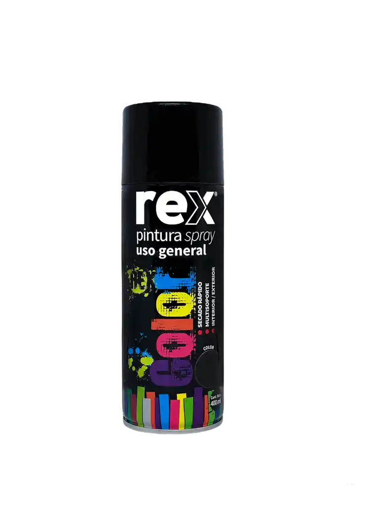 Pintura en spray REX de 400 ml ideal para trabajos de pintura y decoración en interiores y exteriores. Su fórmula acrílica de secado rápido ofrece excelente cobertura, acabado uniforme y alta resistencia a la intemperie. Perfecto para pintar metal, hierro, acero, madera, cerámica y yeso, logrando resultados duraderos y profesionales. Ideal para reparaciones, manualidades y proyectos de mejoramiento del hogar. ✔ Secado rápido ✔ Alta cobertura y acabado decorativo ✔ Resistente a la intemperie ✔ Apta para múltiples superficies