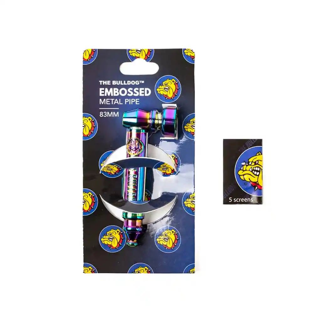 La Pipa Metálica Tornasol The Bulldog combina estilo vintage y resistencia en un formato compacto y práctico. Fabricada en metal de alta calidad, destaca por su acabado rainbow y el clásico logo en relieve de la marca. Incluye 5 rejillas adicionales para un uso más limpio y funcional. Su tamaño portátil la hace ideal para transportar fácilmente y utilizar en cualquier momento. Diseño clásico, durabilidad y estilo icónico en una sola pieza.