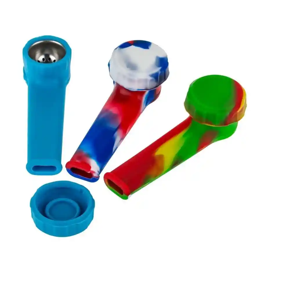 Pipa de silicona con tapa, incluye gran y cómodo quemador vidrio borosilicato o metal. Es ideal para transportarla a cualquier lugar, no se rompe con las caídas y lo mejor es muy fácil de limpiar. Esta pipa de silicona con tapa puede resistir una elevada temperatura, evitando fallas de material. Su sensación en mano es genial y muy suave, además es imposible de romper ya que rebota!!. Puedes llevarla a todos lados con facilidad. Su limpieza es muy sencilla, solo tendremos que usar alcohol para limpiar la silicona y el quemador de metal, 9 cm largo
