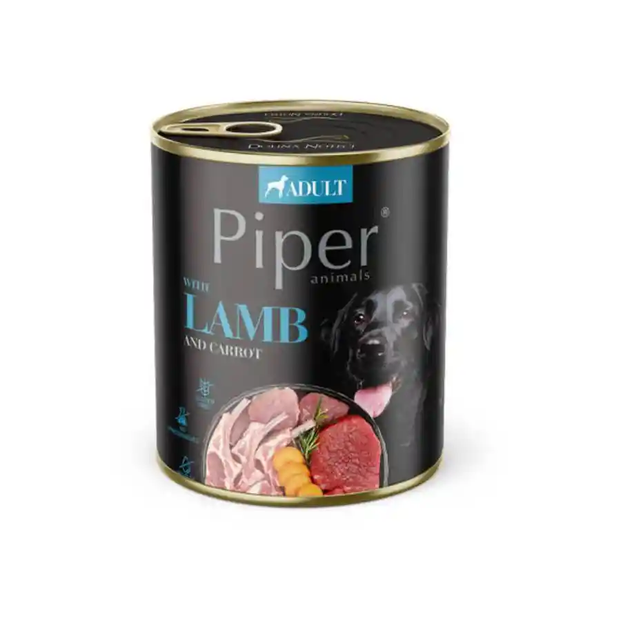 Piper alimento húmedo para perros es una fuente de proteínas de alta calidad rica en aminoácidos como lisina y leucina. El cordero es una fuente importante de hierro y cobre, los minerales aumentarán la resistencia del organismo. La carne de cordero es un producto rico en aminoácidos exógenos deficientes, por lo que puede mejorar el valor biológico de las proteínas alimentarias. La elección de todos los productos de origen animal puede garantizar la calidad de las proteínas con alta digestibilidad. Los oligoelementos valiosos del cordero también pueden complementar su contenido en los alimentos. Los alimentos para mascotas incluyen aceite de linaza, que puede proporcionar un equilibrio entre los ácidos grasos poliinsaturados n-6, y su proporción hace que los alimentos sean fáciles de digerir. El arroz integral proporciona los carbohidratos necesarios para regular el metabolismo de las proteínas y los ácidos grasos. También es una valiosa fuente de vitaminas B y oligoelementos. Además, el arroz integral y las zanahorias, como fuente de fibra dietética, pueden mejorar la función digestiva del tracto gastrointestinal.