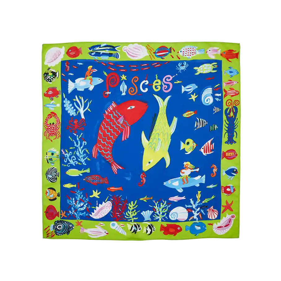 El Knot Wrap Pisces forma parte de nuestra colección del Zodiaco de 2024. Se trata de un envoltorio de regalo reutilizable hecho de botellas de plástico 100% recicladas. El diseño es obra del artista e ilustrador Christopher Corr, nacido en Londres. Para hacer este Knot Wrap, se inspiró en el amor que siente por los mares y los océanos. Nos cuenta lo siguiente: «Los océanos son importantísimos para nuestra supervivencia y debemos velar por ellos. Quería celebrar la diversidad de los mares, todos los colores y la variedad de vida que podemos encontrar en ellos. También me apetecía mostrar su misteriosa naturaleza, de modo que hay sirenas y tritones cabalgando peces y haciendo música acuática. Quería capturar la felicidad que se siente al ver la vida oceánica, los peces, los cangrejos, las langostas, los corales, las conchas exóticas y la riqueza de la flora». Modo de uso Este Knot Wrap mide 70 x 70 cm y es perfecto para envolver cualquier producto de Lush; además, también se puede utilizar como pañuelo para el pelo o para el cuello. ¡Hazte con un regalo personalizado para ese piscis creativo, empático y generoso que hay en tu vida! ¿Sabías? ¿Buscas inspiración sobre cómo usar tu Knot Wrap? ¡Las posibilidades son infinitas! Si quieres envolver algunos de tus productos en un Knot Wrap, por favor indícalo en el mensaje del pedido, comprobando que el tamaño del Knot Wrap que elijas sea de al menos 50cmx50cm si quieres envolver varios productos.