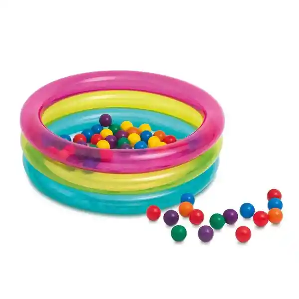 Perfecta piscina centro de juegos inflable redonda 2 en 1 pensada para la máxima diversión de los peques de la casa. Y decimos que es dos en 1 ya que tiene dos usos: puedes utilizarlo en casa como piscina de pelotas y en verano podrás sacarlo al jardín o a la terraza y convertirlo en piscina. Dos usos para que disfrutes de tu centro de juegos todo el año. El centro de juegos inflable tiene 3 aros inflables transparentes de 3 colores: rosa, amarillo y azul. Es muy llamativo y por eso le encanta a todos los niños y niñas. Tiene unas medidas de 86 x 25 cm y está fabricado en vinilo muy resistente. Puedes usarlo tanto en espacios interiores como exteriores. Este centro de juego incluye 50 pelotas para que parezca un verdadero parque de bolas infantil. Las pelotas son de plástico blando que puede apretar y volverán a su forma original sin deformarse. Son de muchos colores diferentes y tienen un diámetro de 6,5 cm. Cuando llegue el buen tiempo, puedes sacar tu centro de juegos al jardín, terraza o patio y llenarlo de agua. Los niños disfrutarán mucho en su piscina, en la cual también pueden estar las bolas para que se entretengan mientras se refrescan. Este centro infantil está recomendado para niños entre 1 y 3 años, y se recomienda siempre que estén bajo la vigilancia de un adulto mientras se están bañando. Por si hubiera algún poro o pinchazo, se incluyen parches de reparación, así durará mucho más tiempo. Características Principales: Modelo: 48674NP Centro de juegos hinchable Intex infantil. Con forma redonda, el centro infantil mide: 86x25 cm El centro de juegos incluye 50 bolas de diferentes colores. Son de plástico blanco y tienen un diámetro de 6,5 cm El centro de juegos puede utilizarse en espacios interiores con agua o al aire libre sin agua. Se recomienda no instalar la piscina sobre cemento, asfalto u otra superficie dura. El centro de juegos está fabricado con vinilo resistente y está recomendado para bebés de 1 a 3 años. El centro de juegos tiene 3 aros transparentes para mayor seguridad del niño ya que los padres pueden ver lo que está haciendo. Cada aro es de un color diferente: rosa, amarillo y azul. La piscina está libre de ftalatos para la seguridad del bebé. Incluye kit de parches para reparar pequeños poros o pinchazos. Contenido de la Caja: 1 x Piscina 50 x Pelotas de colores