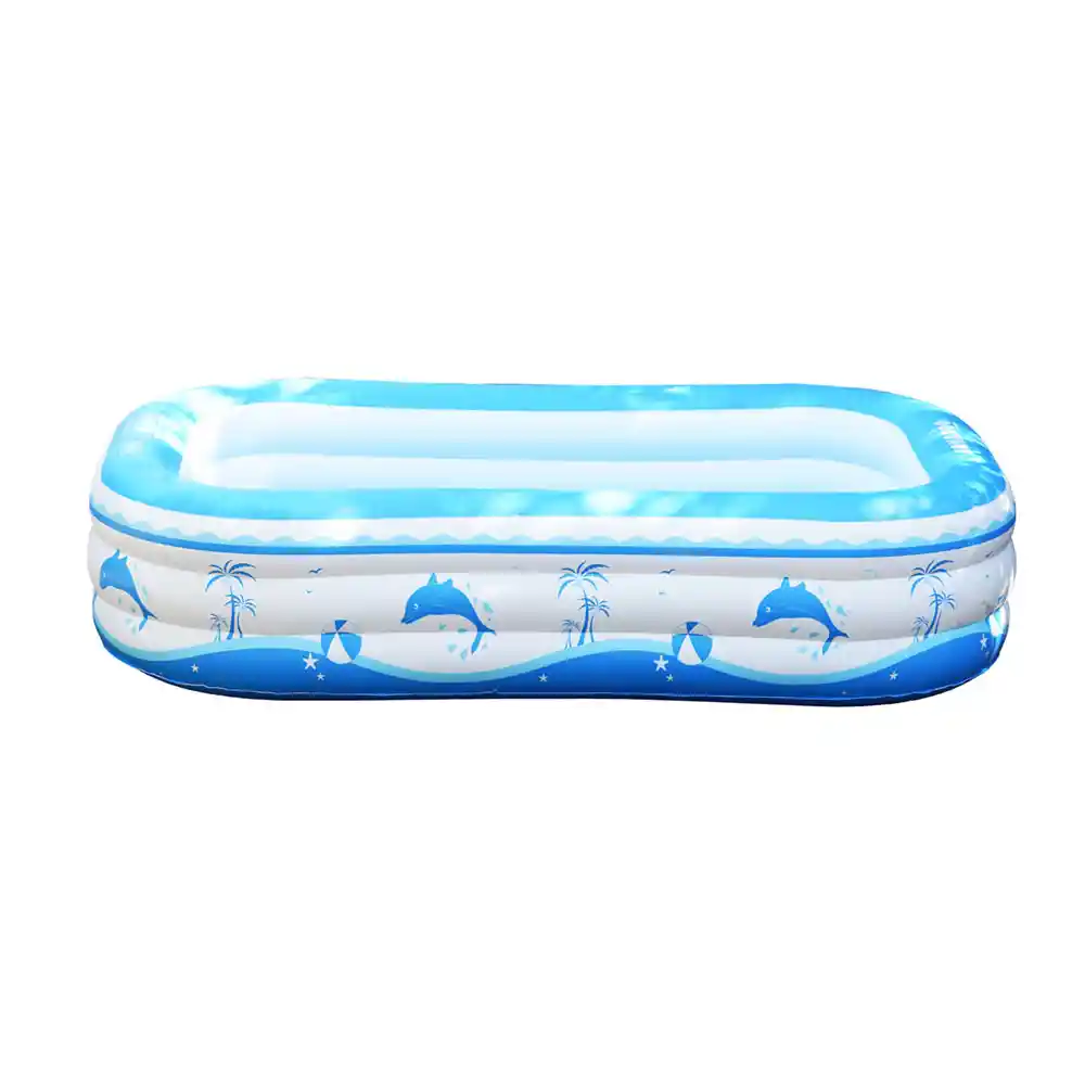 Fabricado con plástico duradero, no tóxico y seguro, no daña a los niños, también para personas adultas El diseño de airbag independiente para cada anillo hace que la piscina sea más duradera. Los estampados de criaturas del océano de dibujos animados estimularán la imaginación y la creatividad de los bebés y adultos. CARACTERISTICAS Hecha en material PVC. Medidas: 220x135x50cm.