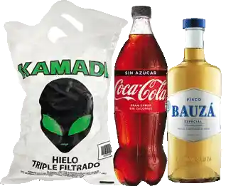 Pisco Bauzá 35° 1L + Bebida 1.5L + Hielo 1kg