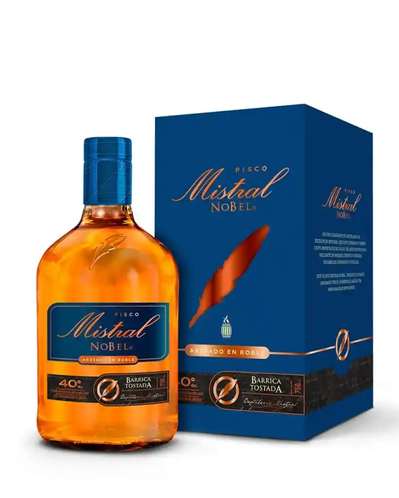 Pisco Mistral Nobel Barrica Tostada 750cc es una edición especial que destaca por su paso por barricas tostadas, lo que le otorga notas ahumadas, vainilla y una complejidad excepcional. Elaborado con uvas seleccionadas y con una presentación premium que incluye una copa oficial Mistral, este pack es perfecto para quienes valoran los destilados de alta calidad.