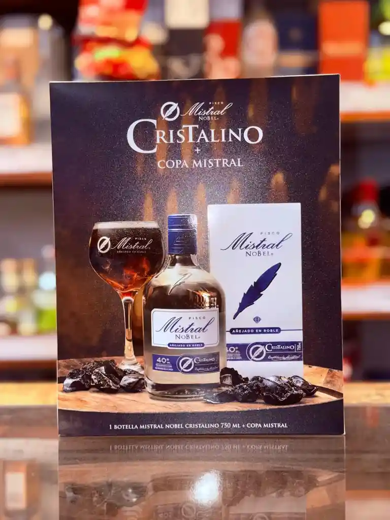 Pisco Mistral Nobel Cristalino 750 Ml + Copa Regalo